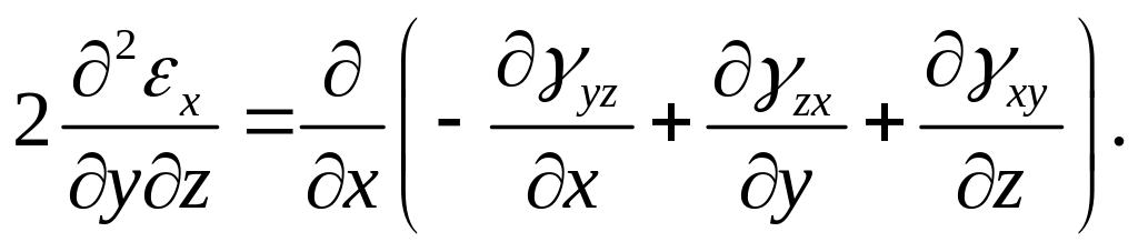 Другие подобные зависимости могут быть получены циклической перестановкой. В результате придем к шести зависимостям, которым должны удовлетворять компоненты деформации –