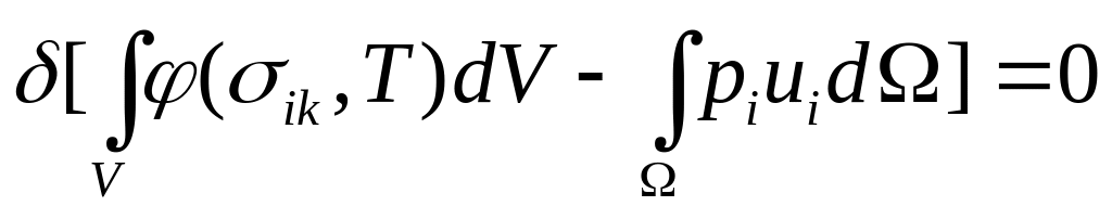 При решении статической несвязанной задачи термоупругости в напряжениях при фиксированных объемных силах необходимо обращаться к обобщенному вариационному уравнению Кастильяно –
