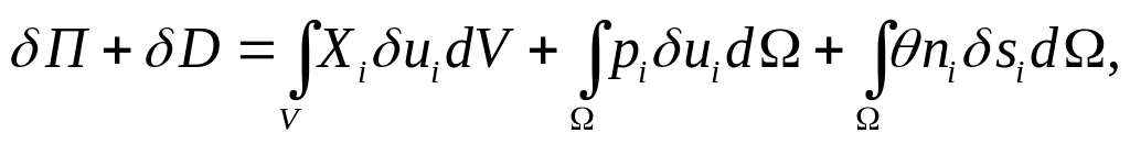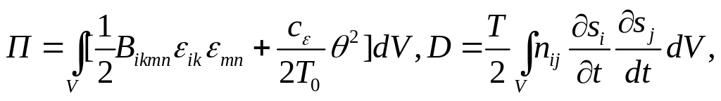 Био в работе [19] обобщил вариационное уравнение Лагранжа на случай связанной задачи термоупругости при малом отклонении текущей температуры от начального значения. Соответствующее вариационное уравнение записывается следующим образом –