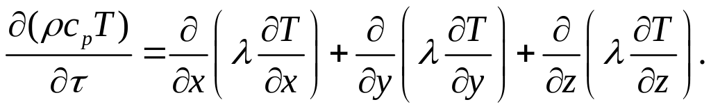В форме изменения температур уравнение теплопроводности представится в виде –