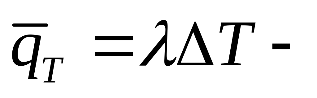 При решении задач теплопроводности приходится встречаться со всеми указанными особенностями теплового режима тел (различных по форме и содержащемуся веществу в объеме). Основной величиной для определения переноса тепла теплопроводностью в теле служит удельный тепловой поток, который определяется формулой –