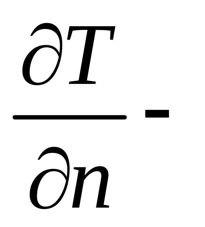 Вдоль изотермических линий тепло в теле распространяться не может, и перенос тепла осуществляется лишь в направлениях от одной изотермической поверхности к другой в сторону понижения температуры. Кратчайший путь распространения тепла в изотропном теле в любом месте, очевидно, соответствует направлению нормали к изотермической поверхности. Удельный тепловой поток в этом месте тела определяется формулой –