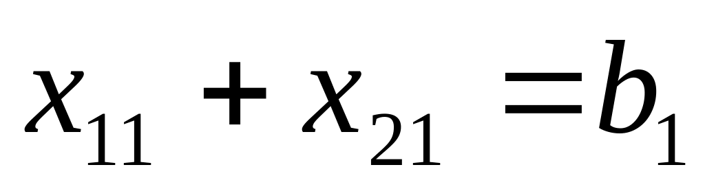 Общее количество угля, доставленное в П1, должно равняться b1. Отсюда: