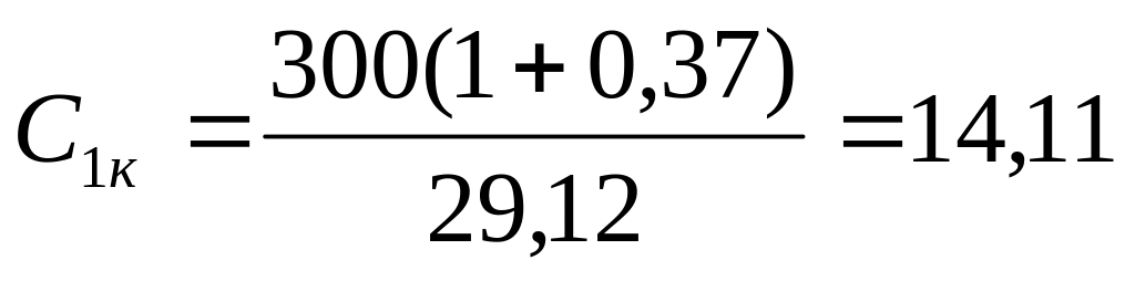 де С1к – основна і додаткова зарплата комбайнерів з відрахуваннями на соціальні заходи, що визначаються коефіцієнтом Кс, (коефіцієнт Кс= 0,37) і віднесена до 1 т. зерна; С1к розраховується як