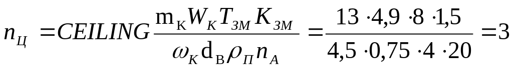 nЦ -- кількість циклів (їздок) одного АТЗ за зміну визначається при умові, що його вантажопідйомність дорівнює вантажопідйомності ПП: