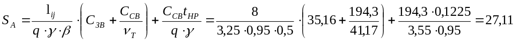 Собівартість ТТП при збиранні зерна Sзк із застосуванням компенсаторів (причепів-перевантажувачів) визначається як сума прямих експлуатаційних затрат: на збирання зерна комбайнами Sк та на перевезення зерна тракторним причепом-перевантажувачем з трактором - Sп і собівартості SA перевезення автомобілями:
