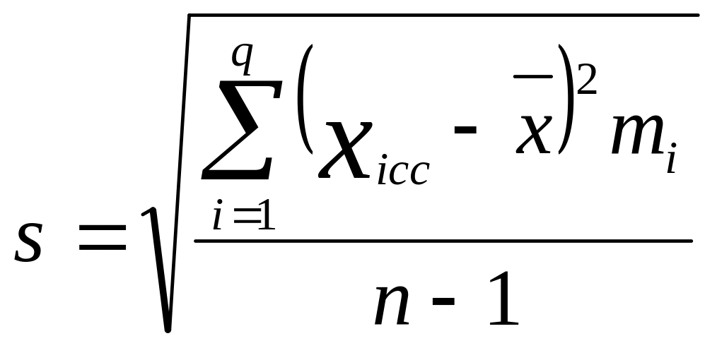- широту розмаху розбивають на інтервали, кількість яких q можна визначити за формулами: