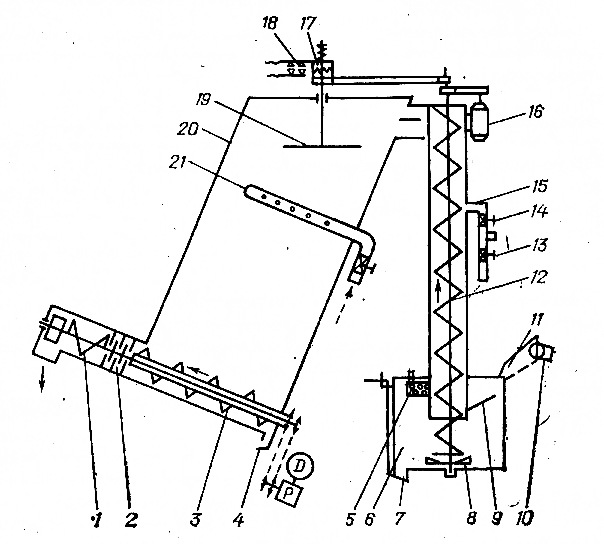 3) шлюзового затвора; 4) гвинтового живильного органу.