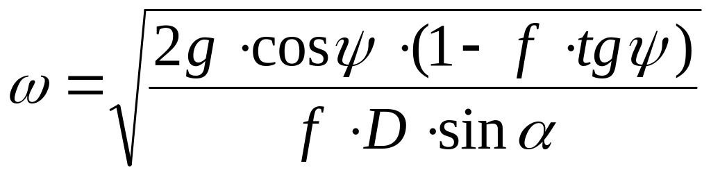 (D- діаметр шнека; f- коефіцієнт тертя; ψ – кут між площиною витка шнека і вертикальною силою тяжіння; R – радіус від осі обертання до матеріалу на диску; v – радіальна швидкість; α – кут підйому гвинтової лінії шнека ).