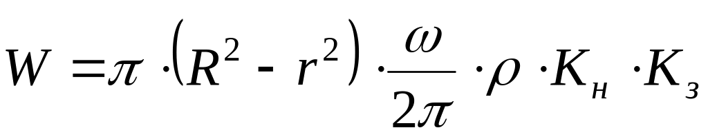 де R– радіус жолоба, м; r – радіус вала, м; Kн – коефіцієнт нахилу; Kз – коефіцієнт заповнення; V- об’єм матеріалу, м3, S – площа поперечного перетину, м2; l – активна довжина, м; z – кількість секцій; - густина корму, кг/м3; - кутова швидкість барабана, с-1;
