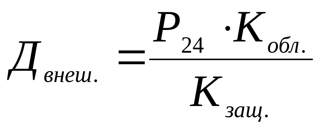 в) Определяем дозу внутреннего облучения с учетом коэффициента защиты. По внутреннему облучению (так как здания герметичны, то Косл. вн. ≥ 100, а когда средства защиты органов дыхания не используются Косл. вн. = 1):