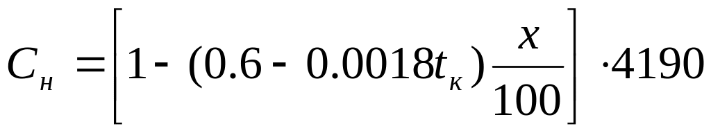 Удельная теплоемкость упаренного раствора Дж/(кг∙К) определяется по формуле [1, с.11]: