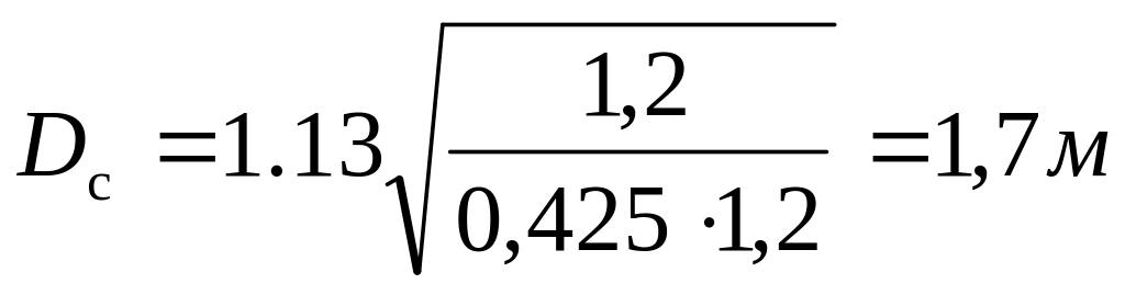 Диаметр парового пространства сепаратора Dс, м, определяется по формуле [4, c.76]: