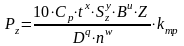 Здесь: P-проекция (составляющая) силы резания на направления X, Y и Z соответственно, H;