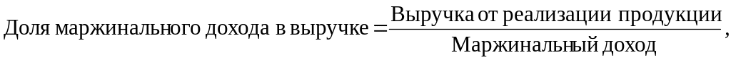 Маржинальный доход это разница между выручкой от реализации продукции и переменными затратами на ее производство. Предприятие будет рентабельным при условии, если маржинальный доход выше постоянных затрат. Расчет производится по формуле: