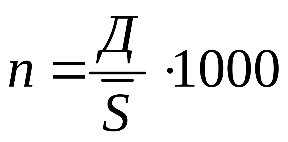 Коэффициент разводов (n) — число разводов (Д) на 1000 человек населения в среднем за год: