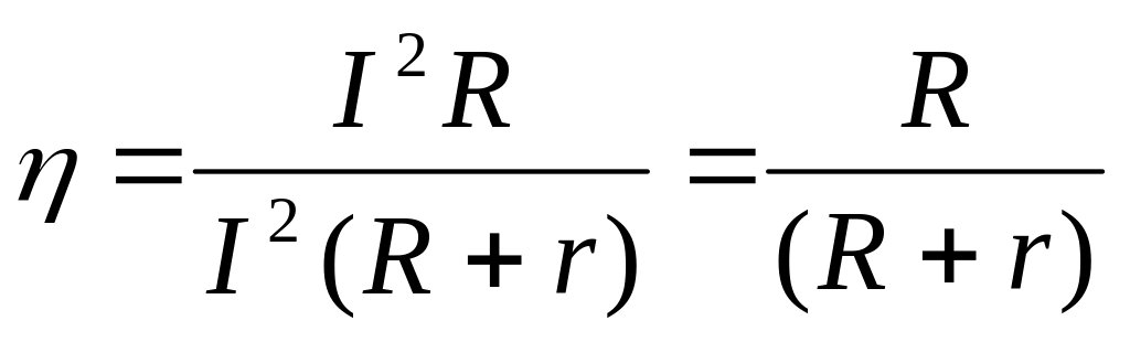 У цьому випадку, як видно із формули (3), = 50 %. Крім того, = 1, коли R = 0. При збільшенні сили струму величина зменшується i стає такою, що дорівнює нулю, коли зовнішній опір R = 0, тобто при короткому замиканні.