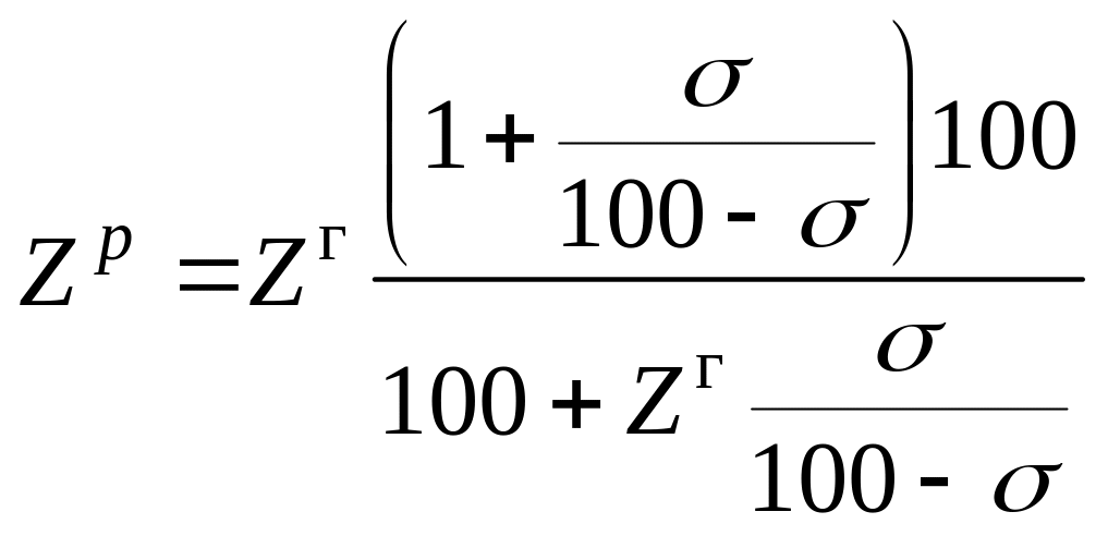 Zг - пределы воспламенения, рассчитанные для горючей массы газа.