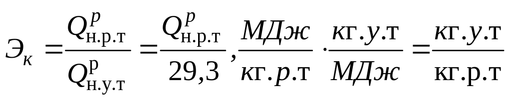 Калорийный эквивалент показывает сколько кг условного топлива нужно сжечь, чтобы получить столько же тепла, сколько выделяется при сжигании 1 кг рабочего топлива.