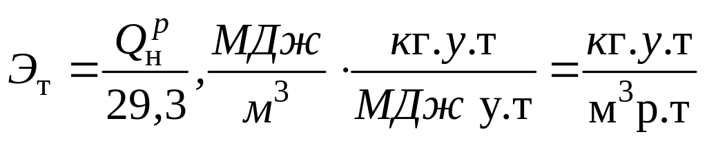 Для сопоставления газообразных видов топлива пользуются коэффициентом теплоплотности Эт