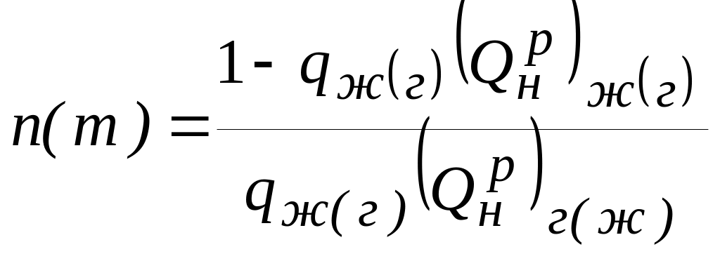 где ( )ж и ( )г – теплотворная способность жидкого и газообразного топлива;