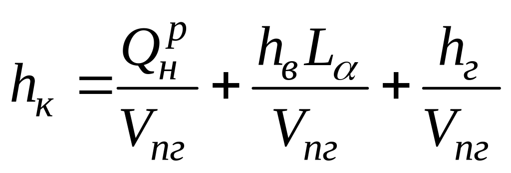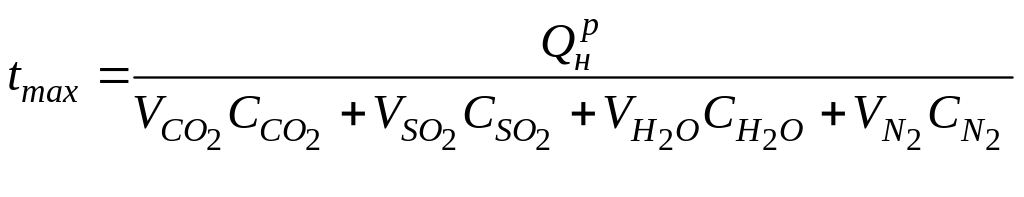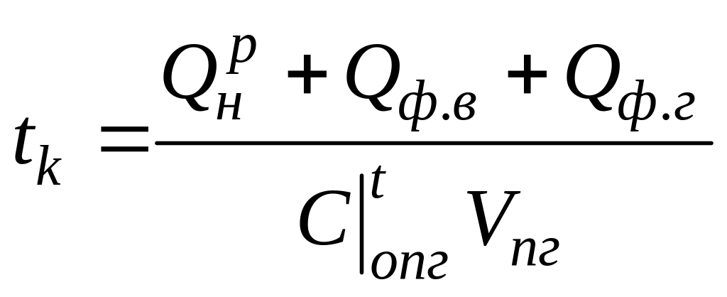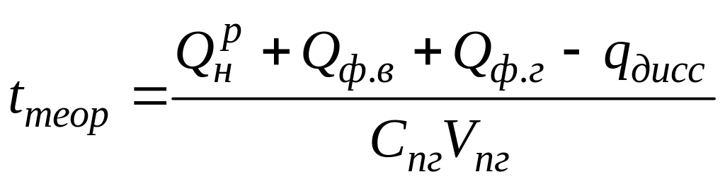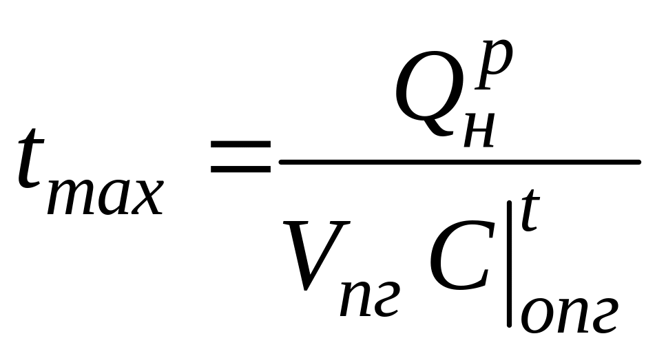 Из этого выражения следует, что максимальная температура, которую приобретают продукты горения, равна