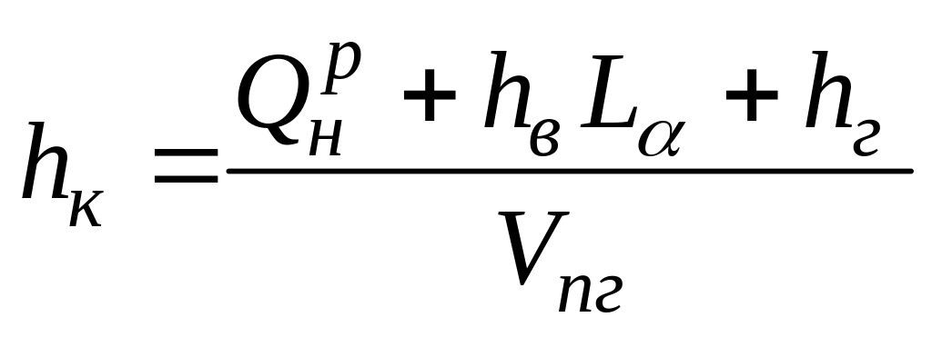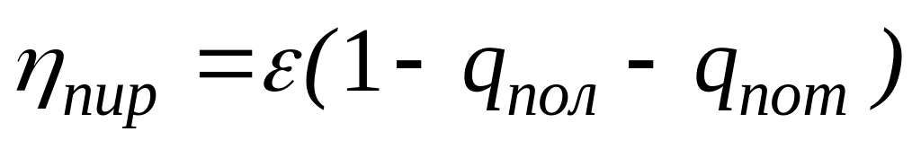 Значение ηпир колеблется в пределах 0,6-0,85 для нагревательных печей. ηпир является эмпирической величиной, но можно вычислить и по формуле