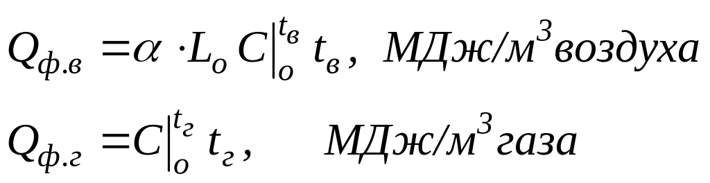 Qф.т - физическое тепло подогретого газа или жидкого топлива, МДж/м3.