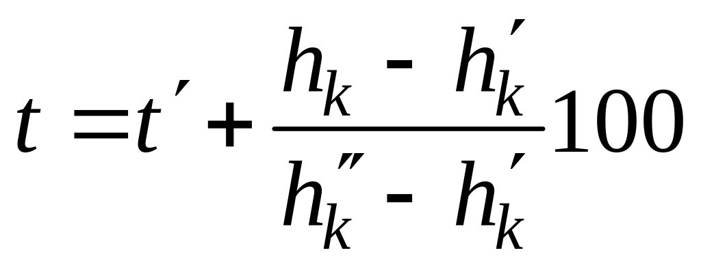 Откладывая hк на оси ординат hпг, проводится прямая параллельная оси абсцисс до пересечения с кривой энтальпии и из этой точки опускается на ось абсцисс, где и отмечается tк.
