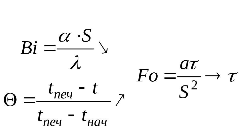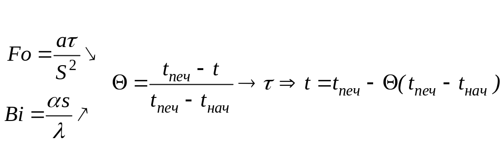Т.е. если задано время нагрева τ, то можно вычислить критерий Fо. Из условий нагрева Вi вычисляем критерий Θ, из которого вычисляем температуру нагрева.