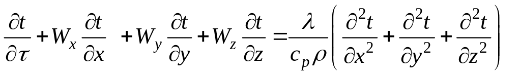 Его называют дифференциальным уравнением теплопроводности в движущейся жидкости или уравнением Фурье-Кирхгофа.