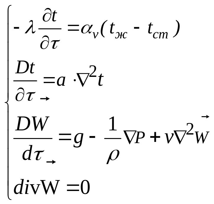 Таким образом, процесс конвективного теплообмена в несжимаемой однофазной среде описывается следующей системой дифференциальных уравнений