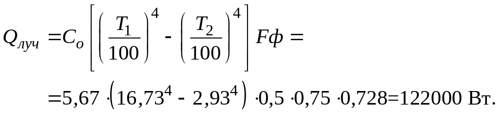 Решив систему этих двух уравнений, было установлено, что тепловые потери излучением через окно, закрытое металлической дверцей, равны: