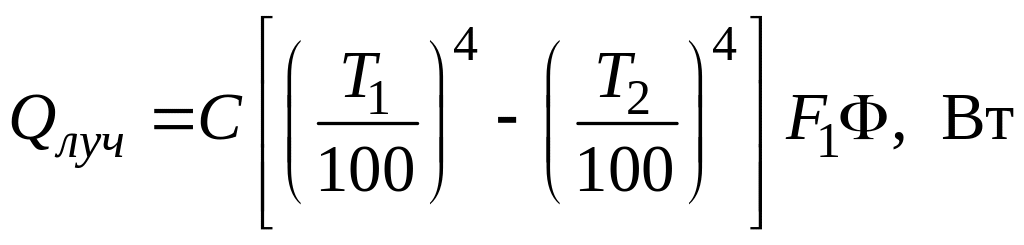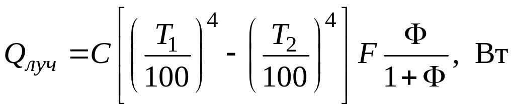 ф – коэффициент диафрагмирования, который учитывает как прямое излучение с поверхности F1 на поверхность F2, так и косвенное излучение, передаваемое обмуровкой.