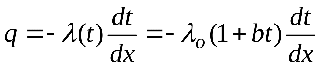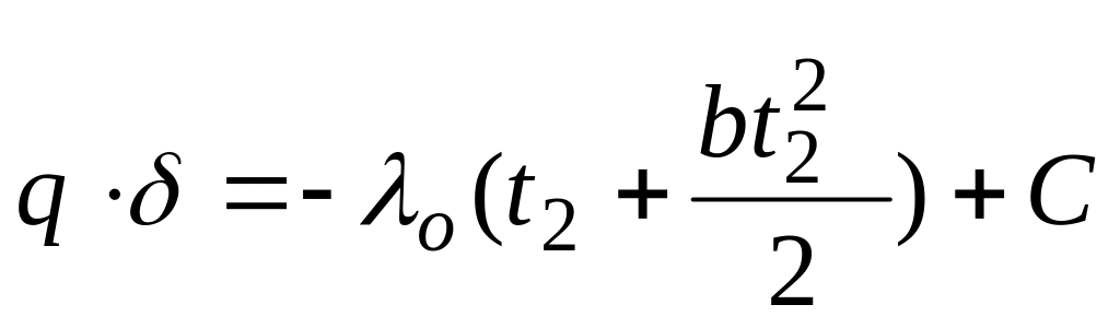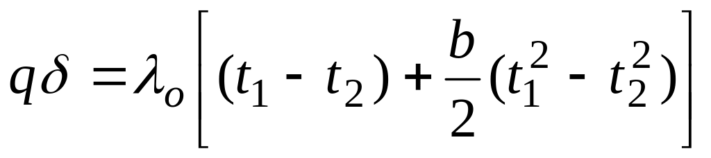 Дополнительные сведения. В действительности же вследствие зависимости от температуры коэффициент теплопроводности является переменной величиной. Если это обстоятельство учесть, то получим иные, более сложные расчетные формулы. Для подавляющего большинства материалов зависимость коэффициента теплопроводности от температуры получается линейной, например λ = λ 0(1 + bt ). В этом случае на основании закона Фурье для плоской стенки имеем: