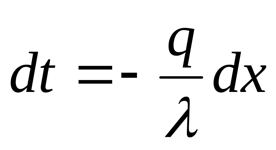 Выделим внутри стенки на расстоянии х от поверхности слой толщиной dх, ограниченный двумя изотермическими поверхностями. На основании закона Фурье (уравнение 6 ) для этого слоя можно написать плотность теплового потока