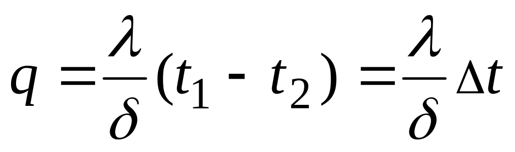 Следовательно, количество тепла, переданное через 1 м2 стенки в единицу времени с, прямо пропорционально коэффи-циенту теплопроводности λ и разности температур наружных поверхностей стенки Δt и обратно пропорционально толщине стенки δ. При этом следует особо отметить, что тепловой поток определяется не абсолютным значением температур, а их разностью - температурным напором Δt = t 1 - t2. Уравнение (12) является расчетной формулой теплопроводности плоской стенки. Она связывает между собой четыре величины: q, λ, δ и Δt.