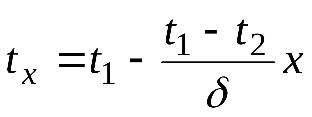 Если в уравнение (11с) подставим значение постоянной С из уравнения (11д) и значение q из уравнения (12), то получим уравнение температуры по толщине стенки распределения