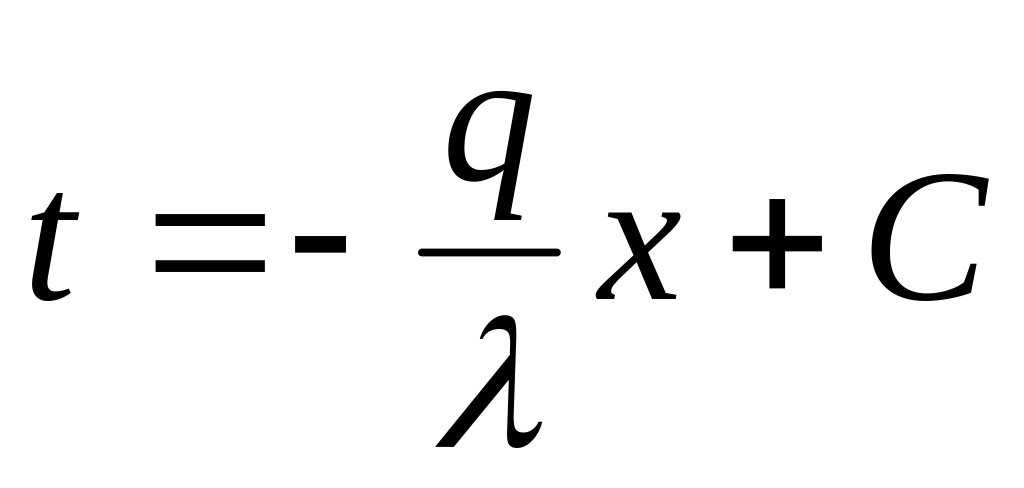 Последнее является уравнением прямой линии. Следовательно, при постоянном значении коэффициента теплопроводности температура однородной стенки изменяется по закону прямой.