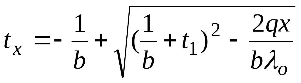 Уравнения температурной кривой в стенке получается путем решения квадратного уравнения (14в) относительно t и подставляя значения С из уравнения (14с), а именно: