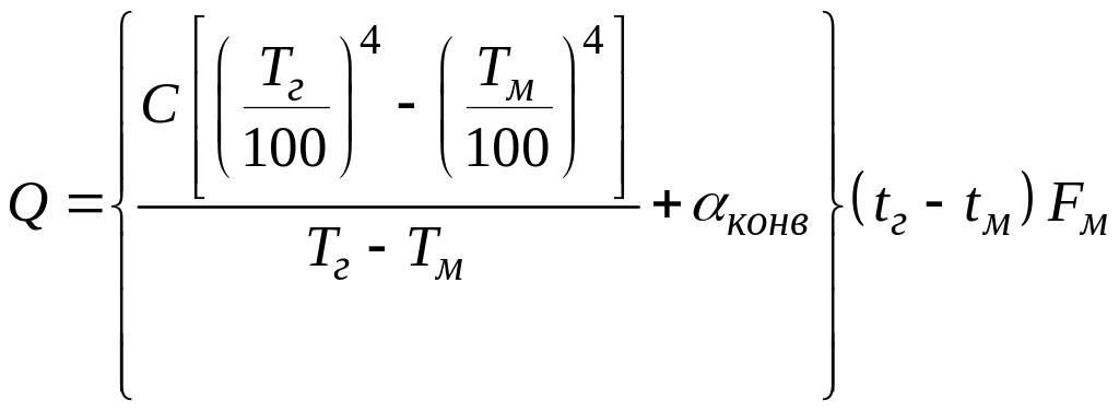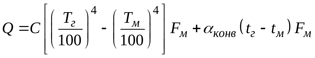 При проведении расчетов возникают осложнения. обусловленные тем, что количество тепла, передаваемое от печных газов к поверхности металла излучением, пропорционально разности четвертых степеней их абсолютных температур, а количество тепла, передаваемого конвекцией, пропорционально разности первых степеней температур.
