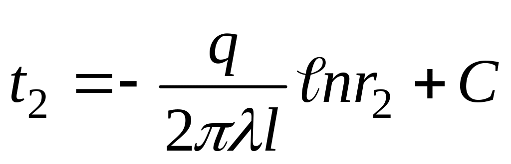 Подставляя значение переменных на границах стенки, а именно при r = r1 и t = t1 при r = r2 и t = t2, получаем следующие два равенства: