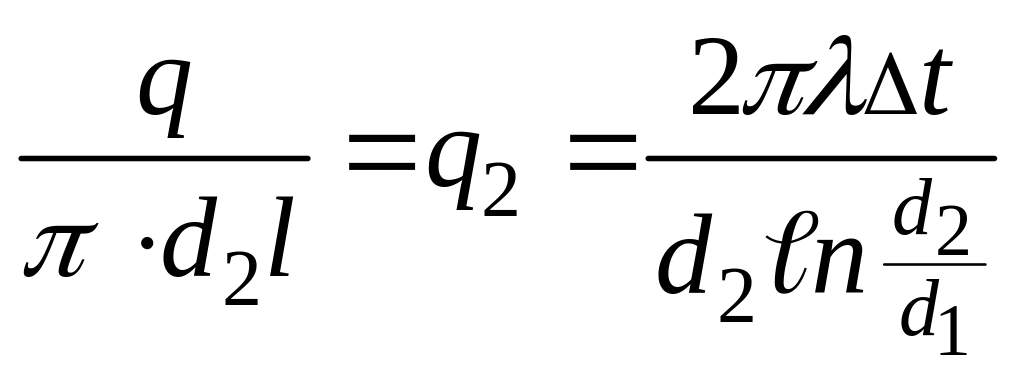 Количество тепла, проходящее в час через стенку трубы, может быть отнесено либо к 1 пог. м длины трубопровода, либо к единице внутренней, либо к единице внешней поверхности трубы. При этом расчетные формулы соответственно принимают следующий вид: