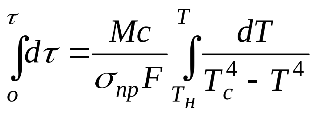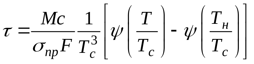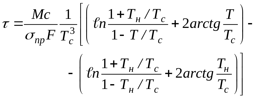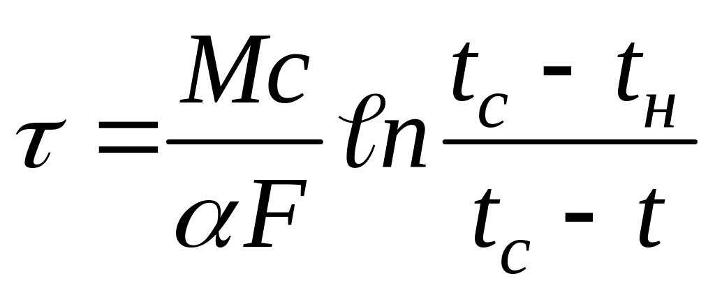 Уравнение (50) позволяет рассчитать время, необходимое для нагрева тела от tи до t. Для расчета температуры, которую приобретает тело за время τ после начала нагрева, формулу (1-50) следует преобразовать:
