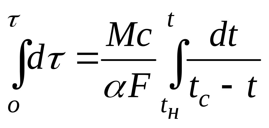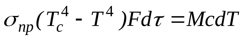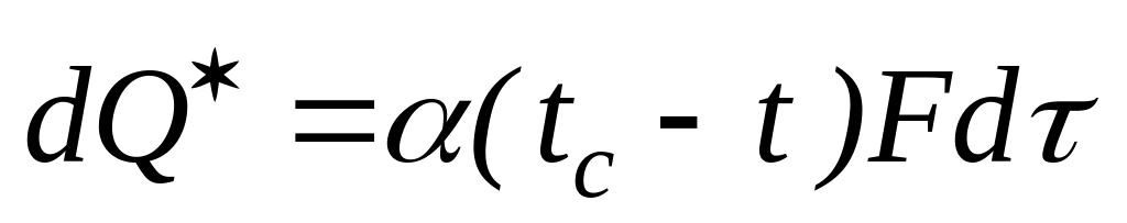 Составим уравнение теплового баланса тела за время dτ. Согласно формуле (Ньютона-Рихмана), количество тепла, проходящего через поверхность тела, в результате теплоотдачи α окружающей среды (tс) составит