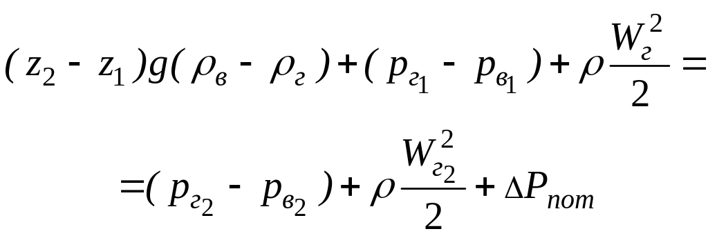 Для этой цели напишем уравнение Бернулли для газов, движущихся по каналу для двух сечений (рис.9) и для покоящегося атмосферного воздуха, окружающего канал, почленно одного из одного другого.