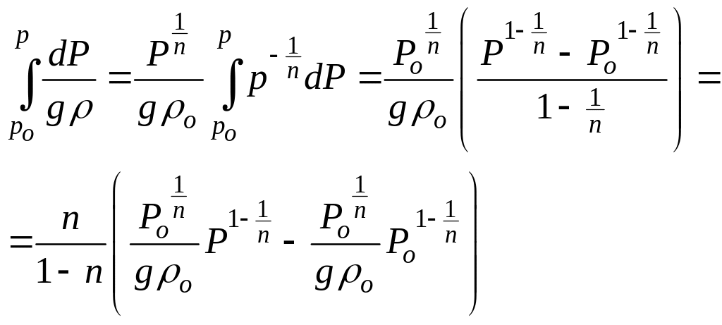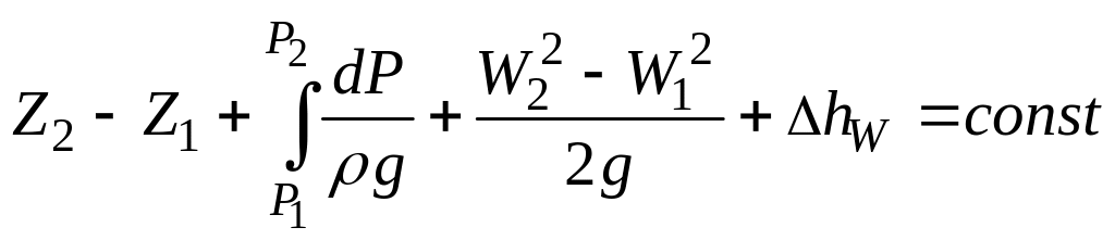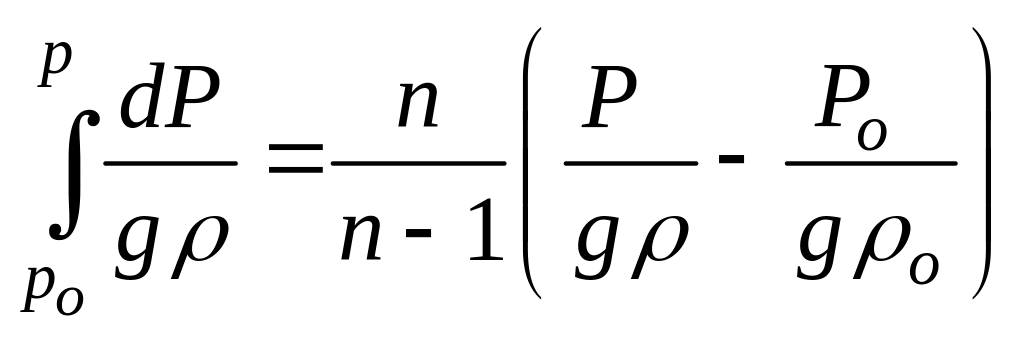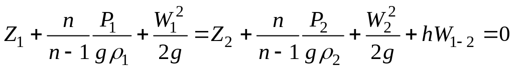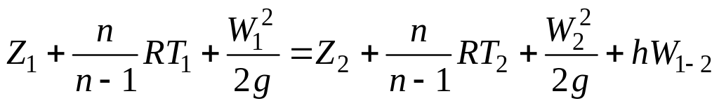 Выведенное уравнение носит название обобщенного уравнения Бернулли. Оно выражает скорость движения в функции от давления, плотности газа с учетом производимой газом работы, изменения потенциальной энергии и работы сил трения.