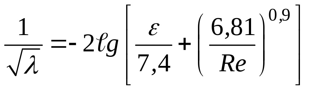 С помощью графика Никурадзе легко получить значения коэффициентов трения для труб различной шероховатости. В первой зоне, как уже отмечалось, величина коэффициента трения определяется формулой Пуазейля . Для расчета в других зонах удобно пользоваться следующими формулами: