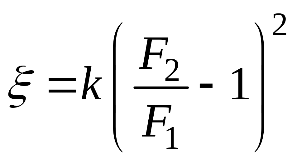 При внезапном расширении потока от сечения F1 к F2 коэффициент можно рассчитать по формуле