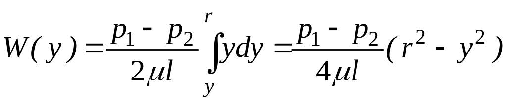 Учитывая граничное условие W = 0 при у = r, где r - радиус трубы, проинтегрируем правую часть последнего уравнения от у до r, а левую соответственно от 0 до W
